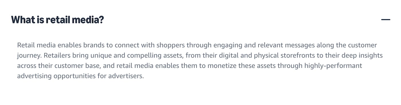 On the contrary, Amazon understands the tremendous complexity in configuring product search and discovery across unique websites with unique product catalogs, and unique personalisation and merchandising requirements. It is likely that Amazon, instead, considers their Retail Ads Service onsite offering as a blueprint for interoperability in a market that has yet to establish Real-Time Bidding (RTB) Principles.