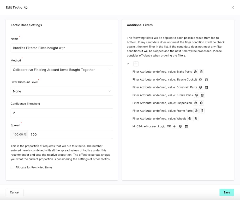 Include or exclude any product attribute (or group of attributes), for example only show products of the same colour or brand, or never show products within the same category.