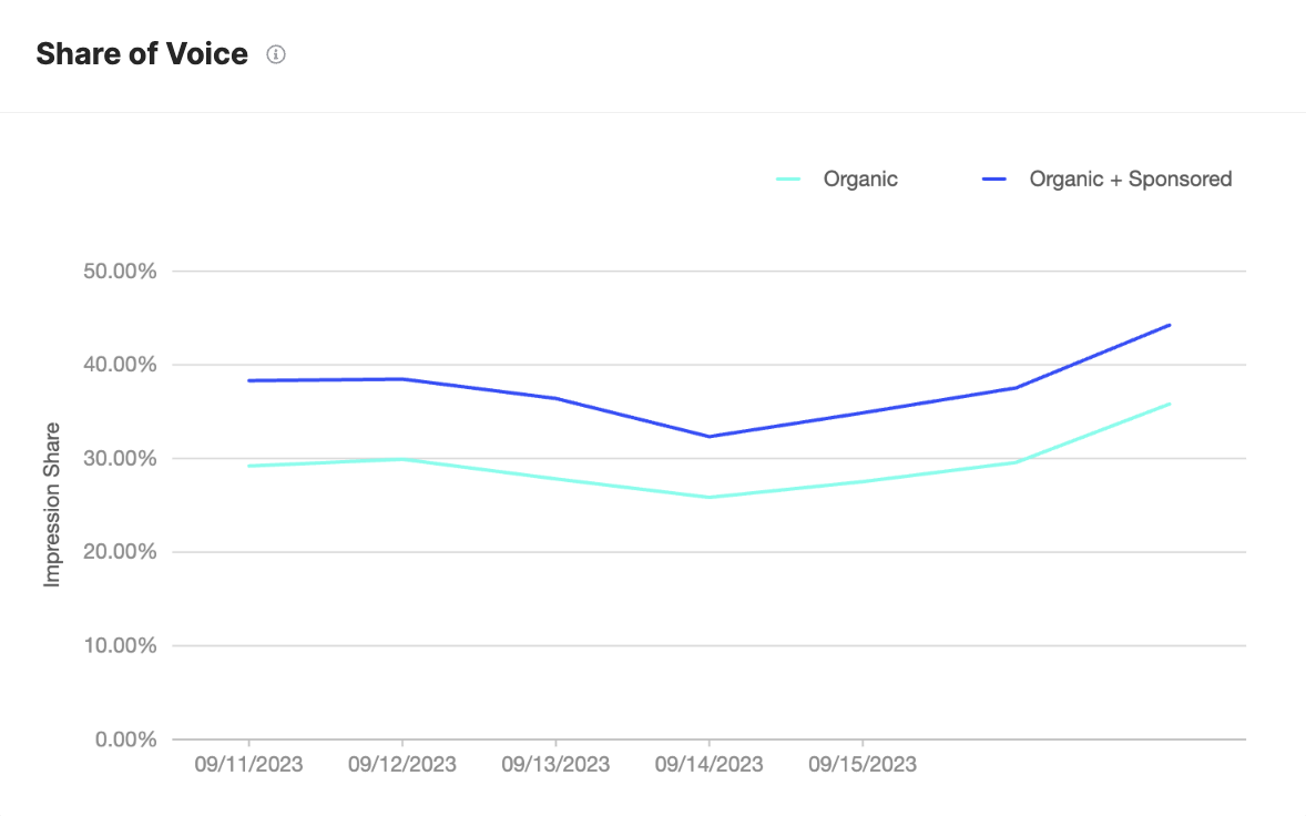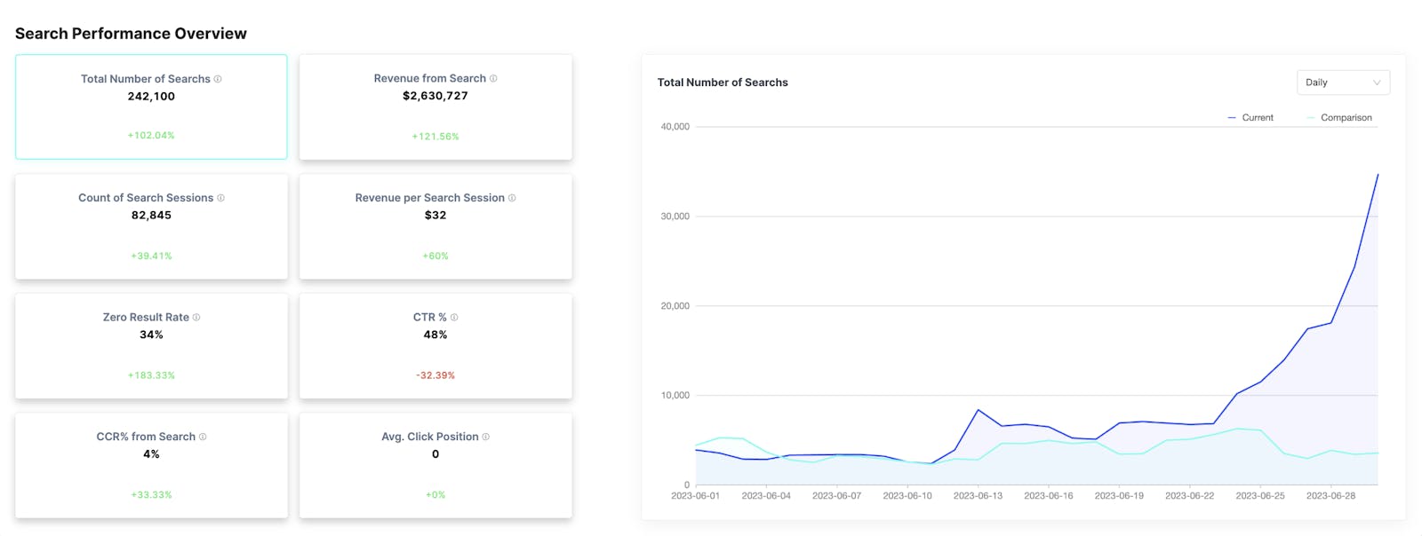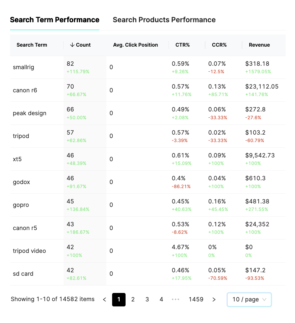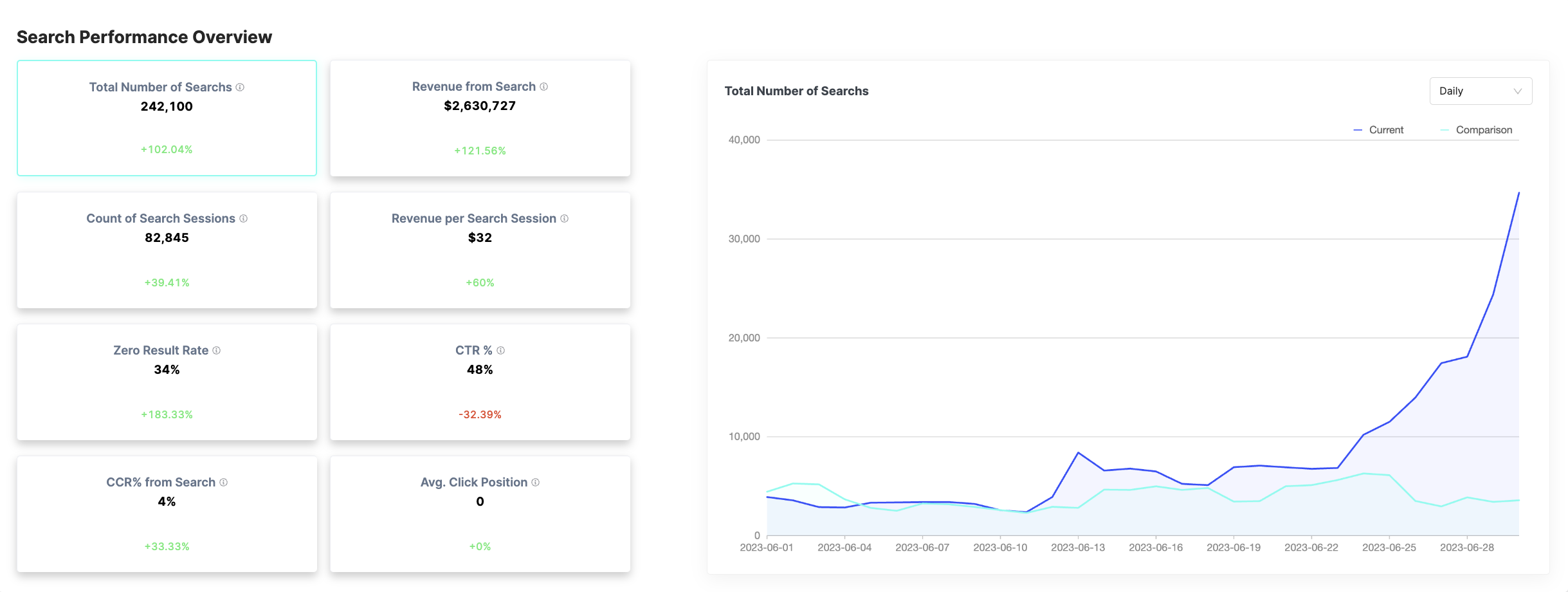 Detailed search term volume, engagement and sales; as compared to discovered items performance.