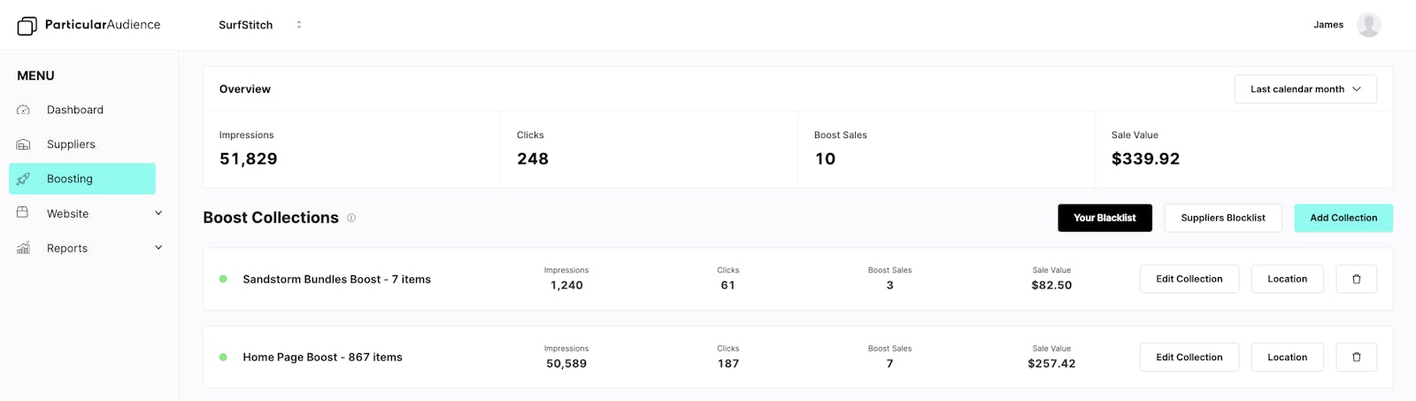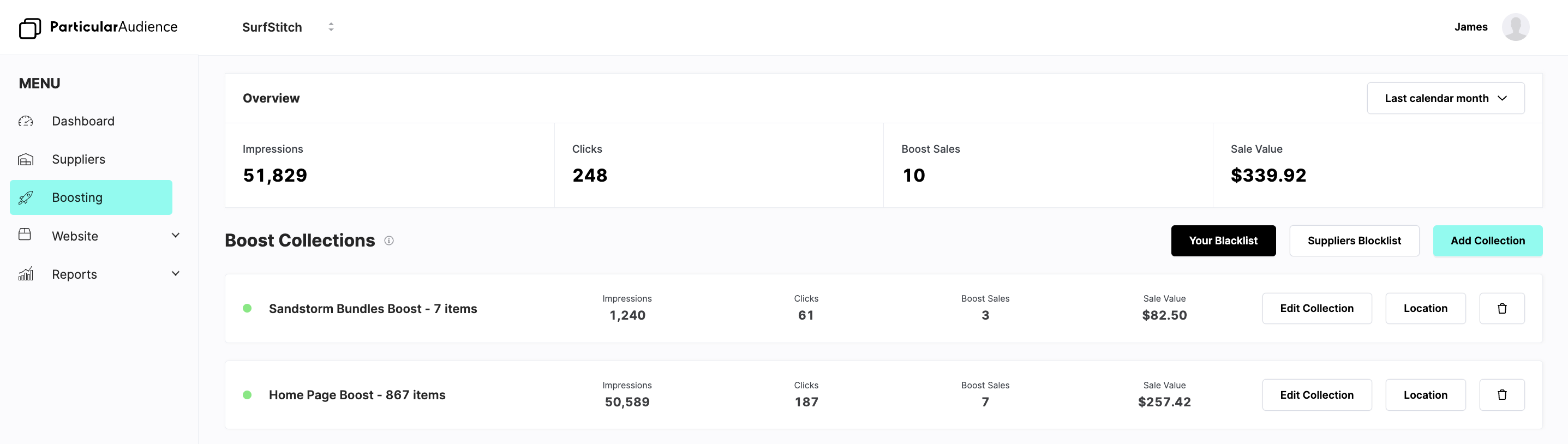 Get detailed analytics which you can use to report back to brands whom you may have sold a boost inclusive package to, and/or internal stakeholders on how boost and bury strategies influence sell through rates.