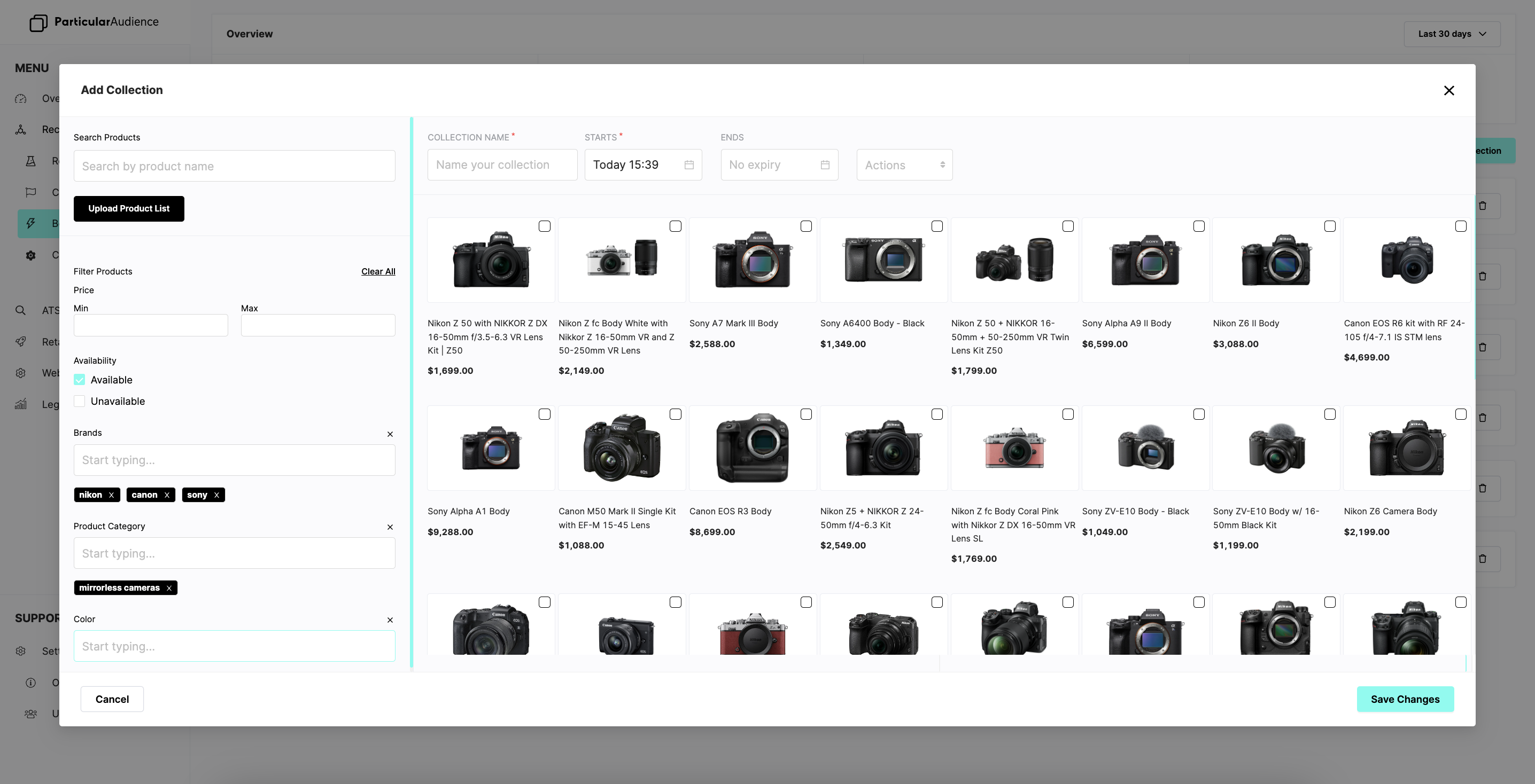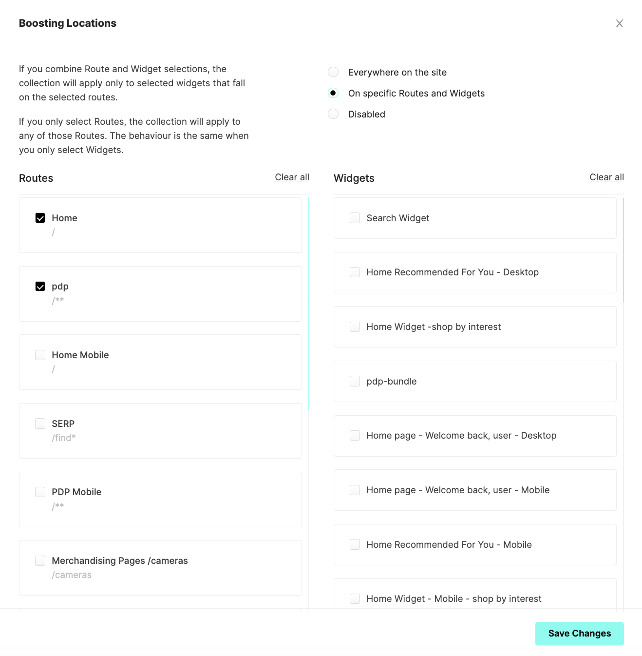 Target specific collections to defined Routes (URLs), Widgets or allow them to run everywhere on site that Particular Audience algorithms deem the item to be relevant to the consumers intent with a high probability of engagement and purchase.