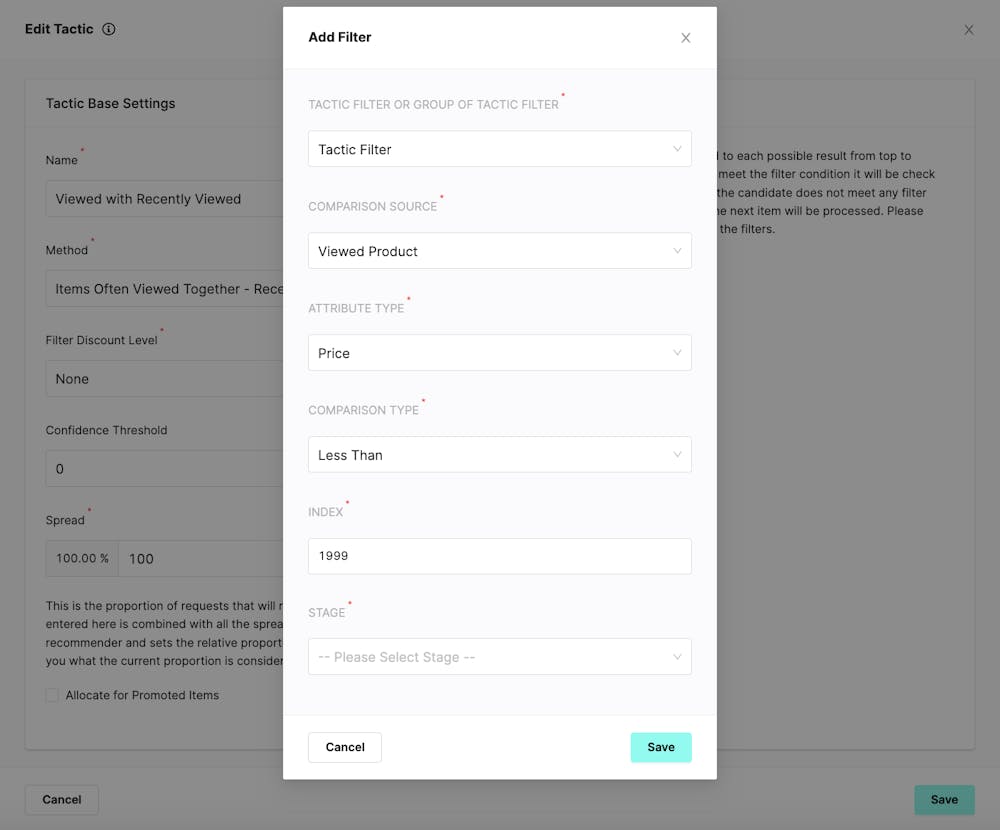 Comprehensive filtering setup allows you to run highly custom recommendation strategies in different areas of your site.