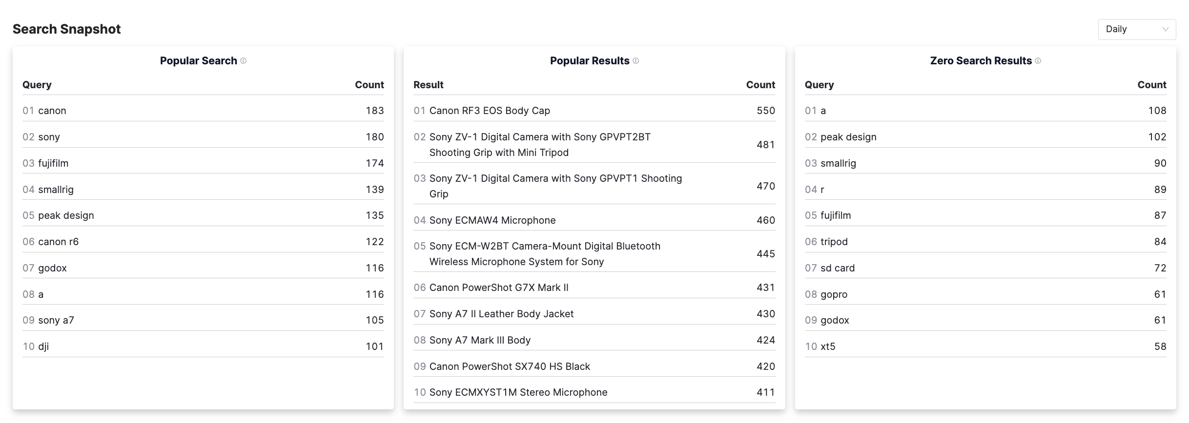 Search insights to optimize ATS, empower SEO teams and inform your buyers on stock vs. consumer trends.