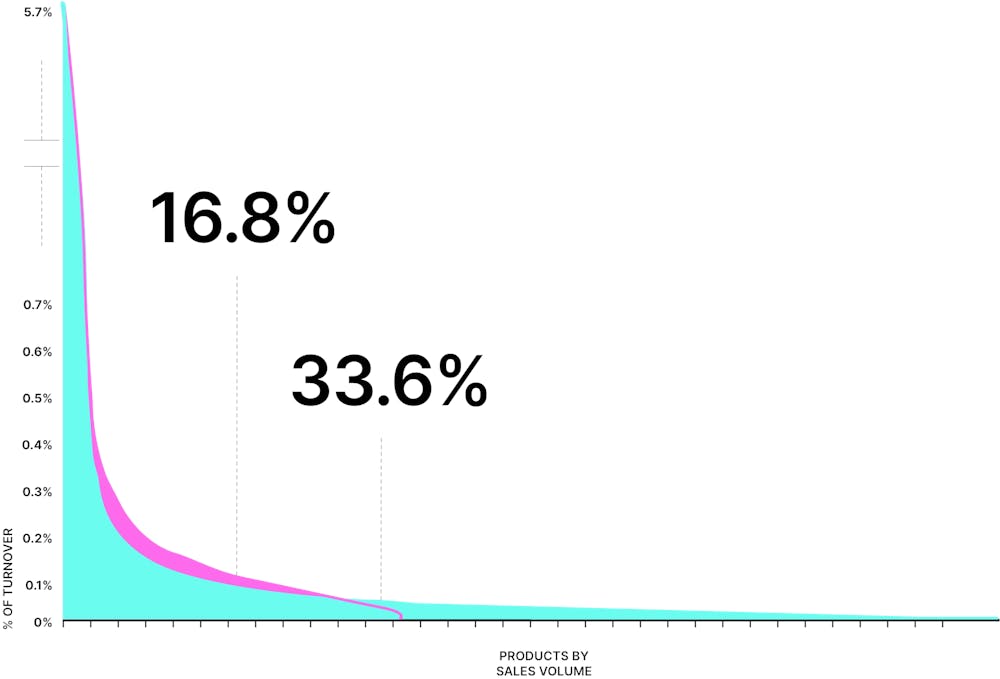 Particular Audience can help you double the % of SKUs that make up the head of your range, where 80% of your revenue comes from.