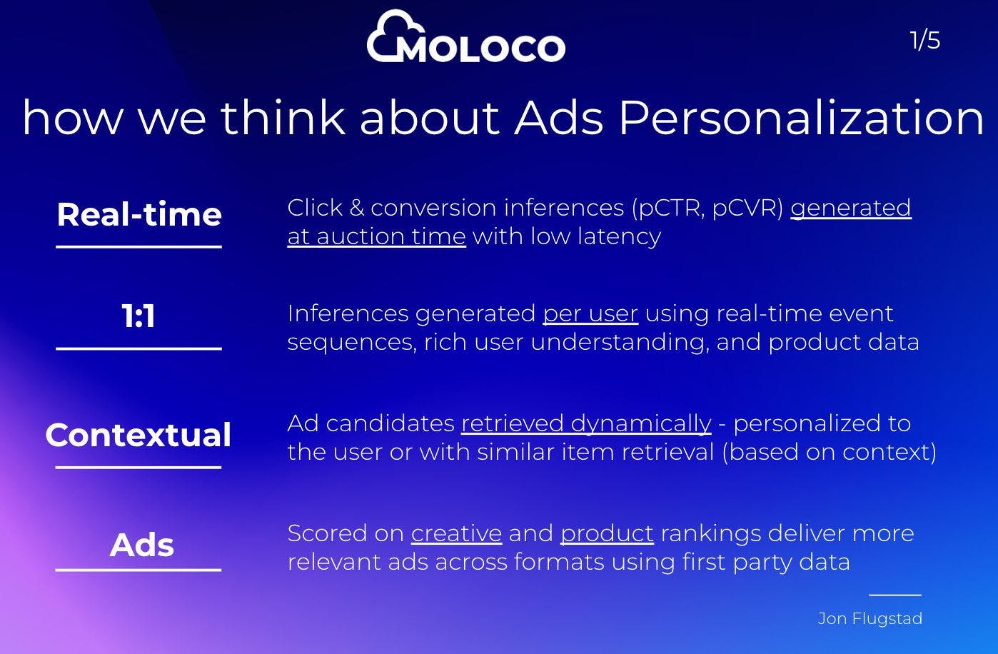 Moloco leans on real-time click and conversion inferences, 1:1 event sequence predictions, context and ads that score based on creative and product rankings.